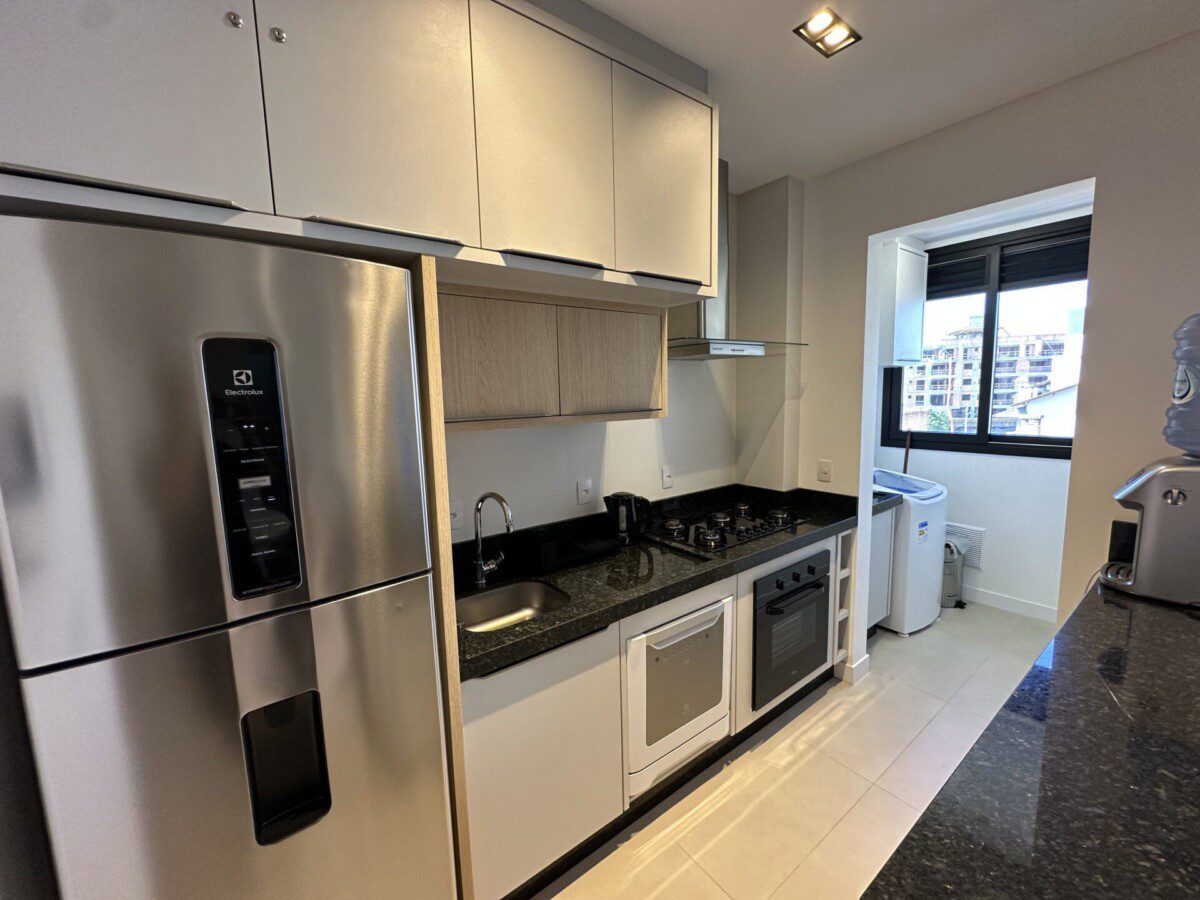 A cozinha moderna e completa possui todos os utensílios e eletrodomésticos necessários para preparar deliciosas refeições inclusive máquina de lavar louças.