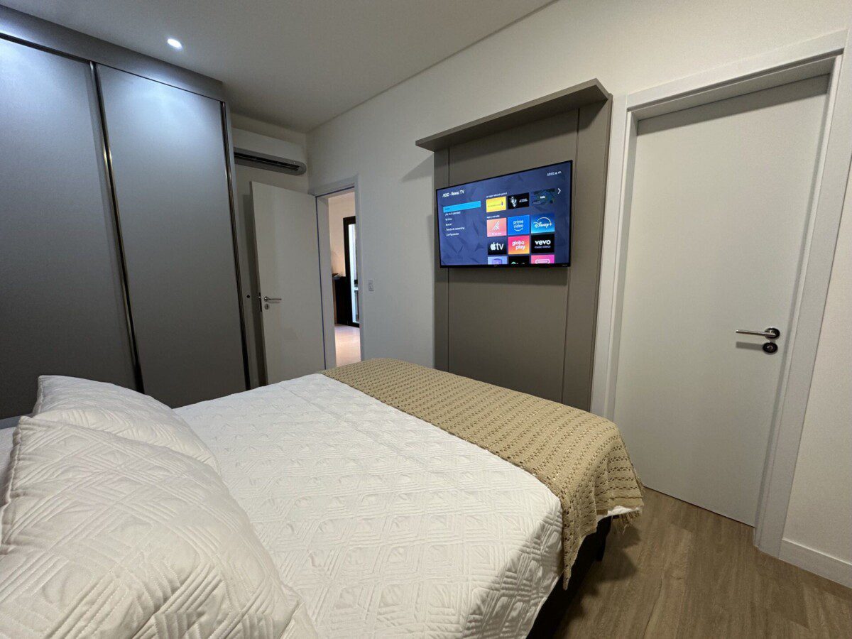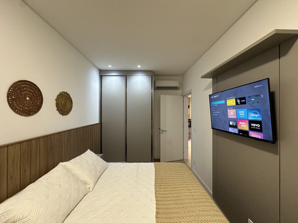 Suíte 1: com uma cama Queen e Smart Tv e ar condicionado.