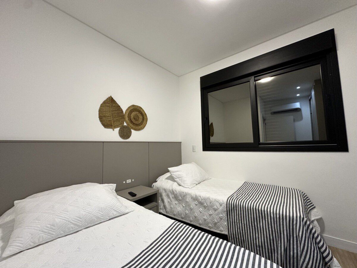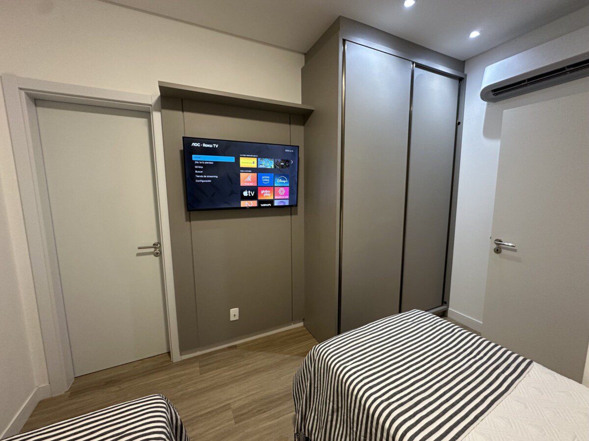 Suíte 2: com duas camas de solteiro +1 auxiliar, Smart Tv e ar condicionado.