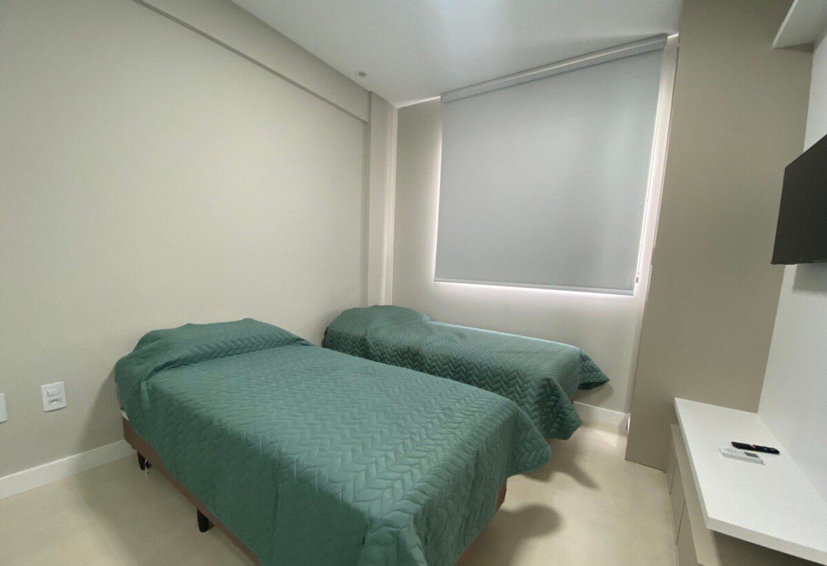- 02 Suítes Confortáveis: Uma suíte com cama box de casal, TV 50”, ar-condicionado e amplo roupeiro, além de uma segunda suíte com duas camas de solteiro, TV 32” e ar-condicionado.