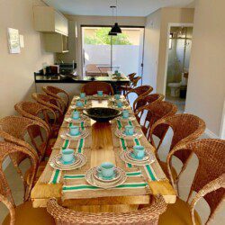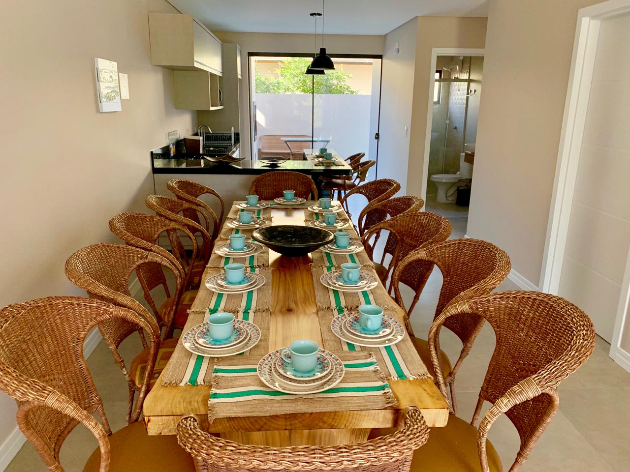 – Cozinha completa com liquidificador, microondas, cafeteira, expremedor de frutas e sanduicheira, freezer vertical , geladeira duplex, perfeita para preparar suas refeições favoritas. Conta com uma mesa para 12 pessoas.