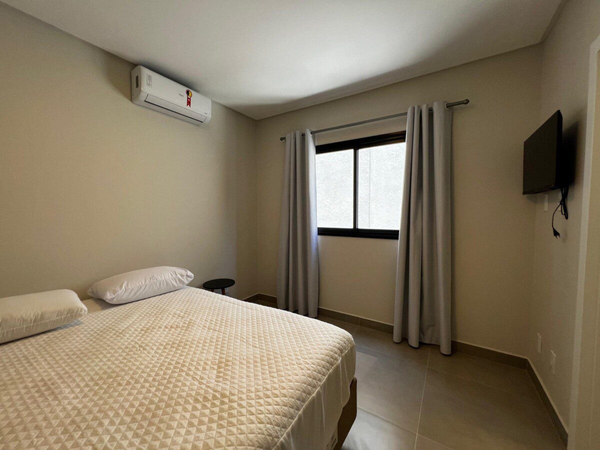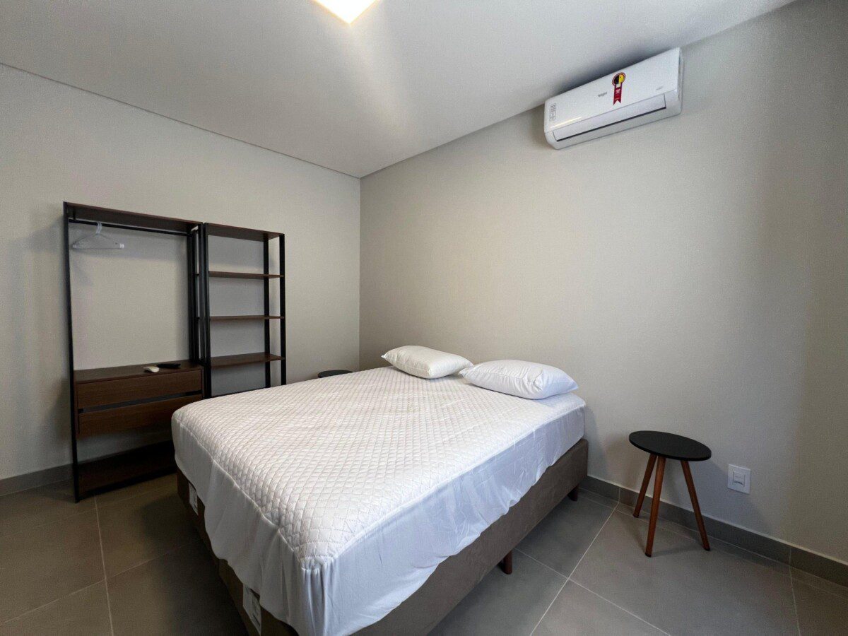 - Suíte com uma cama box de casal, ar-condicionado e Smart TV;