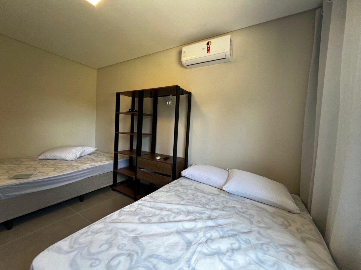 - Suíte 02 com: 02 camas de casal, ar-condicionado e roupeiro; Acomodando até 06 pessoas confortavelmente, tornando-o perfeito para famílias que querem curtir a praia e ao mesmo tempo não abram mão do conforto.