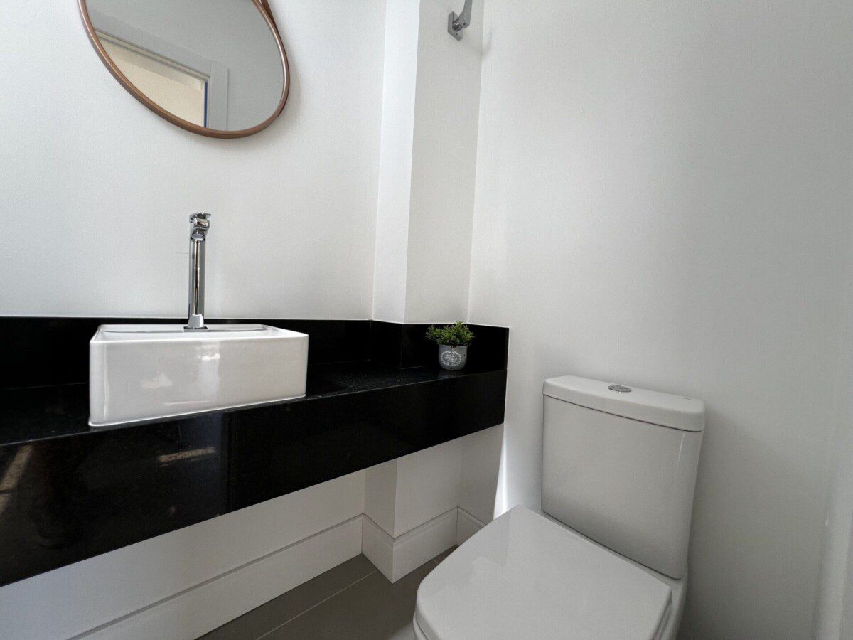 - Banheiro Adicional: Além da suíte, há um banheiro adicional no piso inferior, proporcionando praticidade para os outros hóspedes.