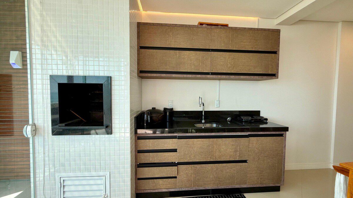 - Área gourmet equipada com churrasqueira, fogão elétrico, geladeira e mesa para 06 pessoas, perfeita para momentos em família com vista para o mar.