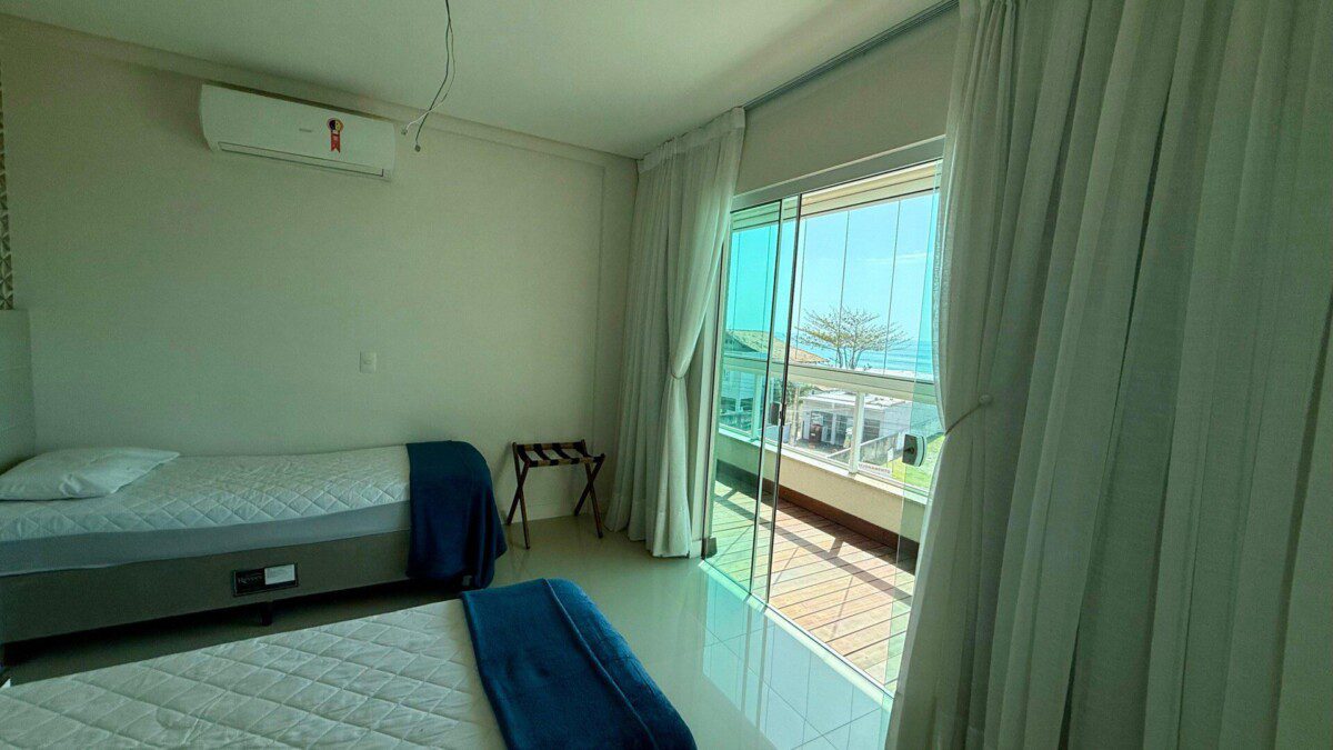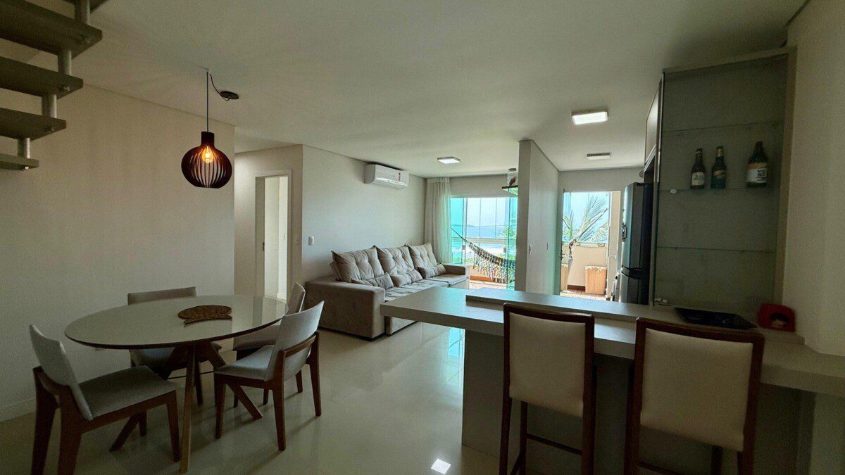 Esta incrível cobertura duplex oferece uma experiência única para suas férias em Bombinhas! Localizada de frente para a avenida principal da Praia do Mariscal, combina comodidade, conforto e uma vista espetacular para o mar. Ideal para famílias ou grupos, acomoda até 09 pessoas com muito espaço e funcionalidade.